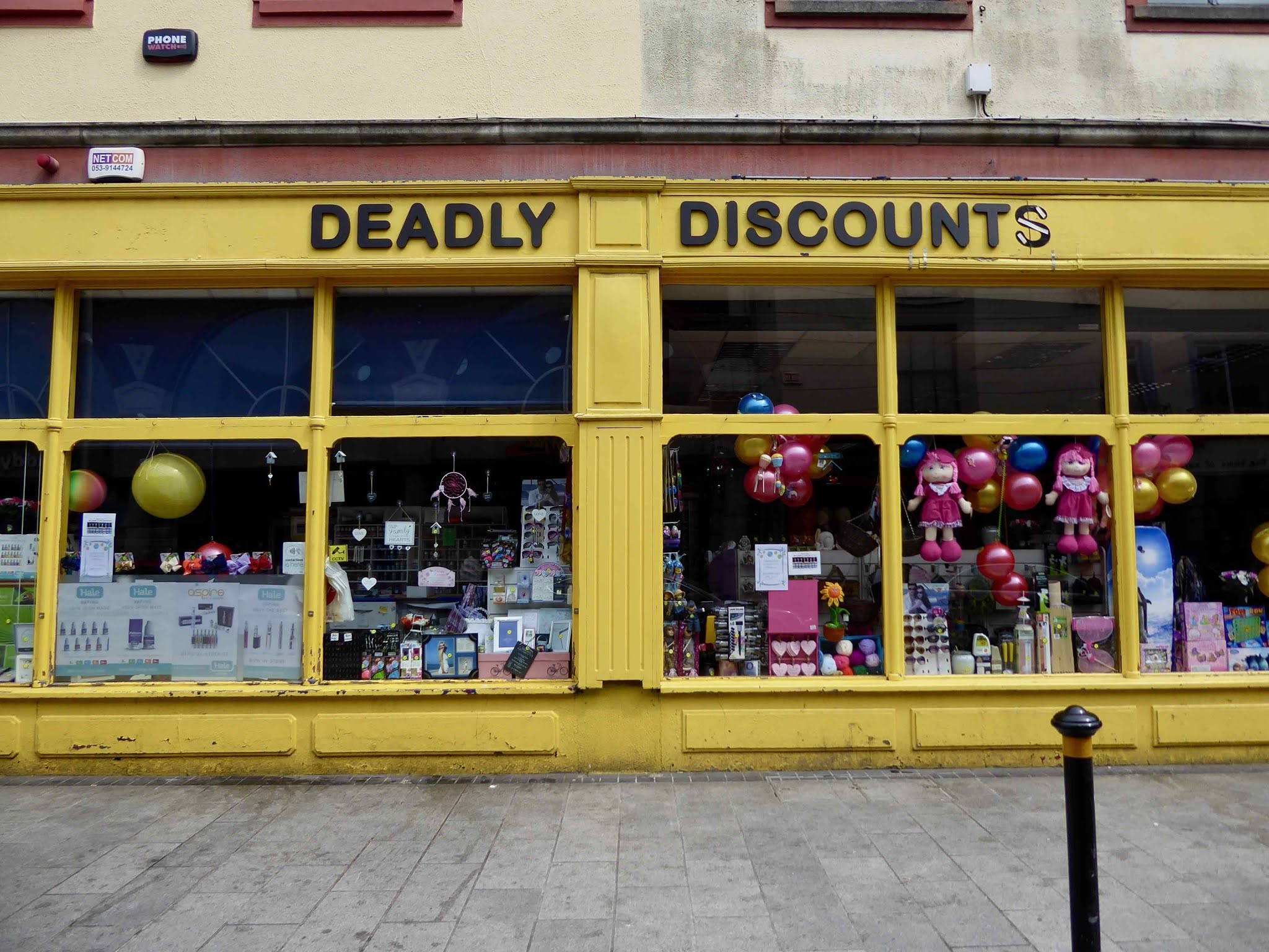 Small town Irish shopping streets are not yet dominated by chains and clones - there’s still a place for small locally owned and operated enterprises. Design decisions are idiosyncratic and provide much employment for local painters and decorators and specialists in hand-lettering. Bright and intense colours are widely favoured along with strong contrasts - often extending to the upper floors of the building. More contemporary stylings can be seen but they’re outnumbered by traditionalists, content to select their fonts from ancient pattern books. UPVC fascias and vinyl wraps are few and far between and even then, an element of eccentricity is never far away. These examples were all seen on a short walk around the town centre of Wexford.